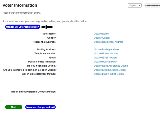 Alternatively, you can notify the local board of elections where you currently live if you wish to cancel your voter registration with a signed written notice. You can also send a cancellation to the State Board of Elections using the Voter Registration Cancellation Form (PDF).