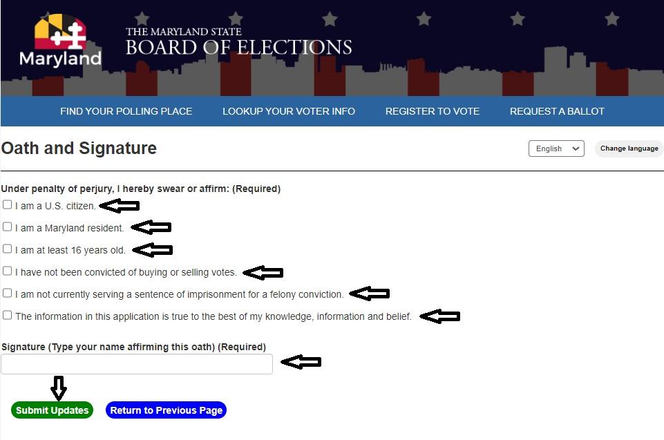 - Finally, complete the Oath and Signature, and then select the green “Submit Updates” button.